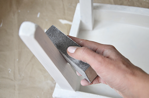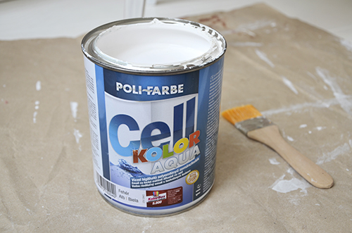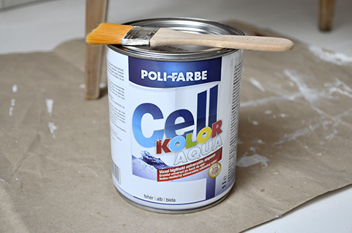 Újabb alapos portalanítás után jöhetett az alapozás. Ehhez a Poli-Farbe vízzel hígítható univerzális töltőalapozóját használtam. Az alapozók általában a felület apróbb hibáit (repedéseket, mélyedéseket, réseket) kiemelik, nem azok elfedésére szolgál. Ez az alapozó viszont az itt-ott előforduló egyenetlenségeket kitölti, eltünteti, így pl. nem kell külön fatapaszt használni ezeknek a kisebb hibáknak a korrigálására. Ráadásul gyorsan szárad (hurrá!) és nagyon jól csiszolható felületet képez. Azt azért még hozzátenném, hogy bár a régi szögek helyei az újrakárpitozás során nem fognak látszódni, én azért azokat kijavítottam fatapasszal, ahogy azt kell.