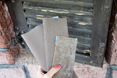 Miután mindent letakarítottam, jöhetett az állapot felmérés. A festék főleg a lamellákról pattogzott erőteljesebben, de ott sem mindenhol. Csiszológép helyett, ezúttal a kézi csiszolást választottam. Az előző tulajdonos sok apró eszközt hagyott nekem a pincében, így pl. különböző durvaságú csiszolópapírokat is, amiknek most nagy hasznát vettem.