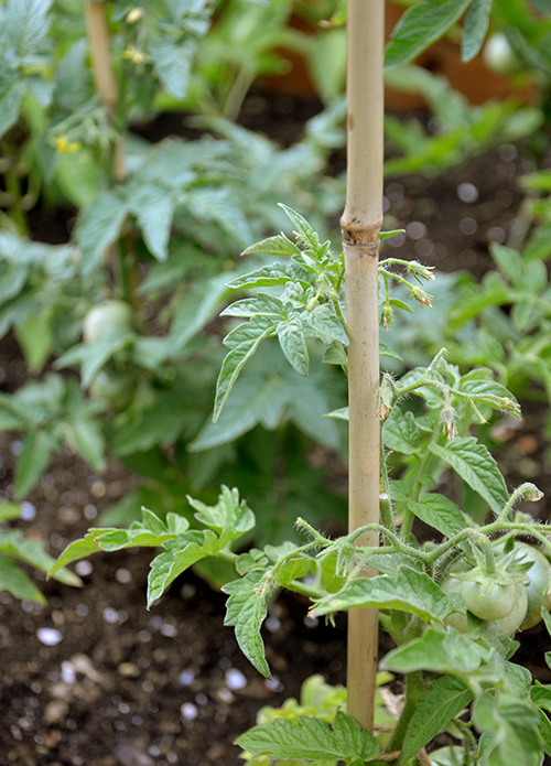 Ehhez bambusz karókat választottam, a kötözést pedig egyszerűen madzaggal oldottam meg.