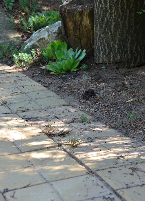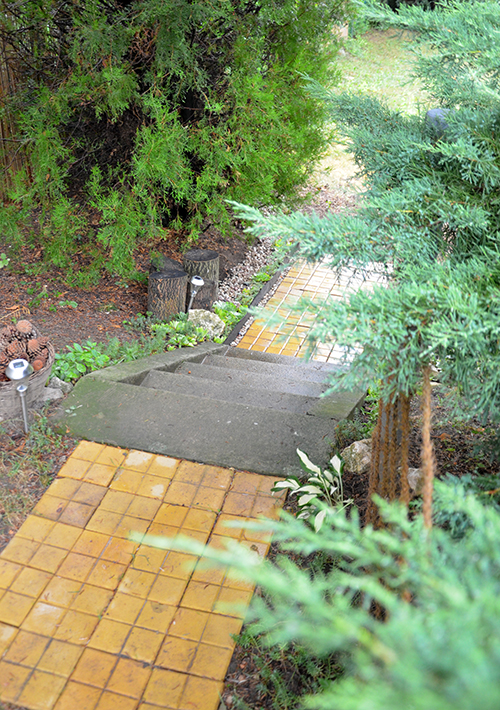 Tavaly, már készítettem egy kis utat ide a föld alól kiásott keramit lapokból (amikről meg ITT írtam), és így a csapadék utáni nagyobb sarat sikerült kiküszöbölni, de azért a föld még így is mosódik rá az egyik oldalról.