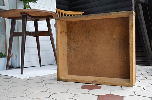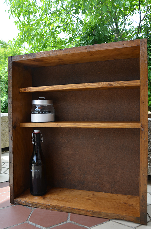A fa elem, amiből a polc készült a pincében volt, amolyan fiók funkciót betöltve. A korábbi tulajdonos ebben tartotta a szögeket, csavarokat, és egyéb apróbb kellékeket, amik barkácsoláshoz, szereléshez szükségesek.