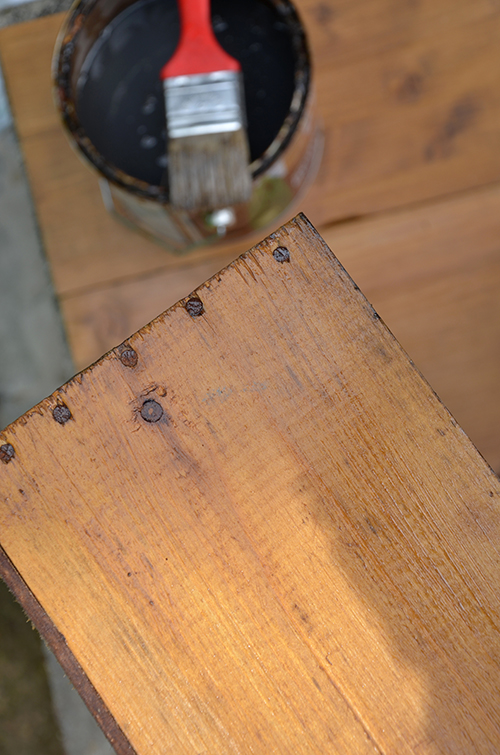 A felületet alaposan lecsiszoltam és portalanítottam, majd két rétegben lekentem lazúrral.
