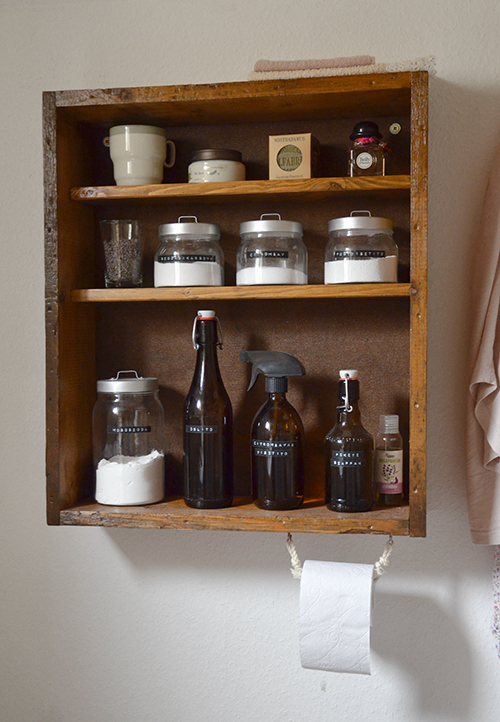 Amikor tavaly kitakarítottam a pincét, ezt is szépen kipucoltam, mert tudtam, hogy egyszer még dolgom lesz vele. Egyszerűen meg akartam menteni, és új életet adni neki. Így lett belőle fürdőszobai falipolc, amin elsősorban a mosáshoz, takarításhoz szükséges dolgokat tárolom esztétikusan.