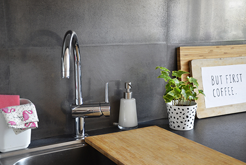 Persze, még nagyon messze vagyok a végétől, egy csomó kisebb-nagyobb elem hiányzik, és még csak egy fal van kifestve… A kávéfőzőmnek külön sarkot szemeltem ki, a mennyezeti lámpát újra kell gondolnom, idővel kell majd bortartó, valami praktikus függöny vagy roló az ablakra és még sorolhatnám. De mindent csak szép sorjában. A következő feladat a falfestés és a hűtő fölötti üres rész bepolcozása, berendezése.