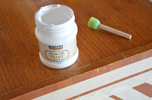 Volt még egy kis Pentart Dekor Paint Soft festékem, ezt vittem fel a felületre.