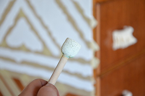 Ecset és henger helyett most szivacsecsetet használtam és pamacsoló, ütögető mozdulatokkal vittem fel a festéket a felületre.