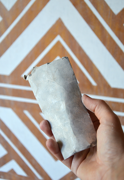 A szalagot kb. 10 perc után húztam le, akkor még picit nedves volt a festék. Teljes száradás után finom csiszolópapírral az egész felületet átcsiszoltam: