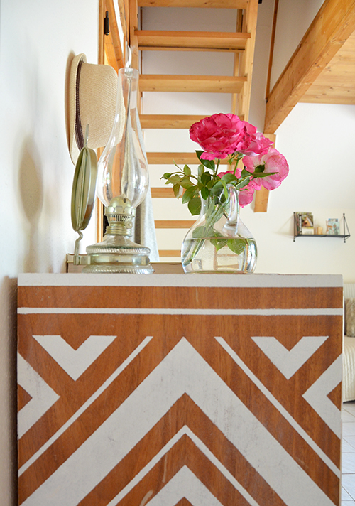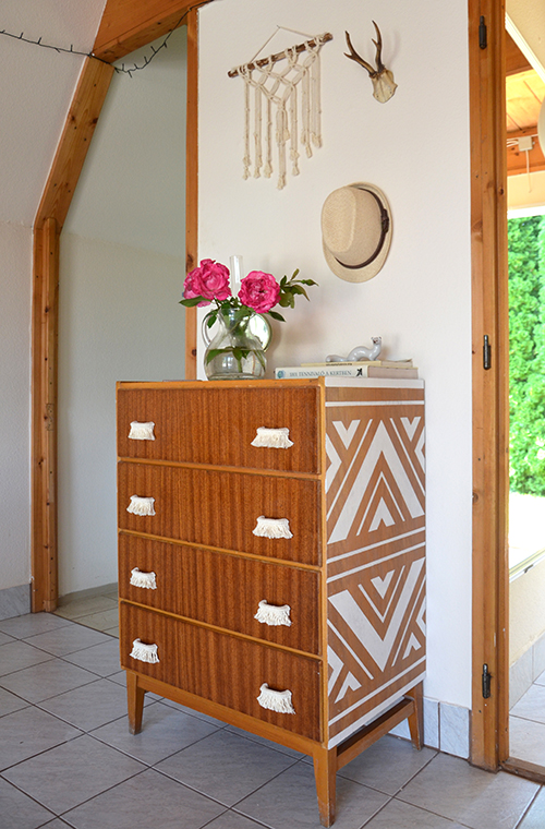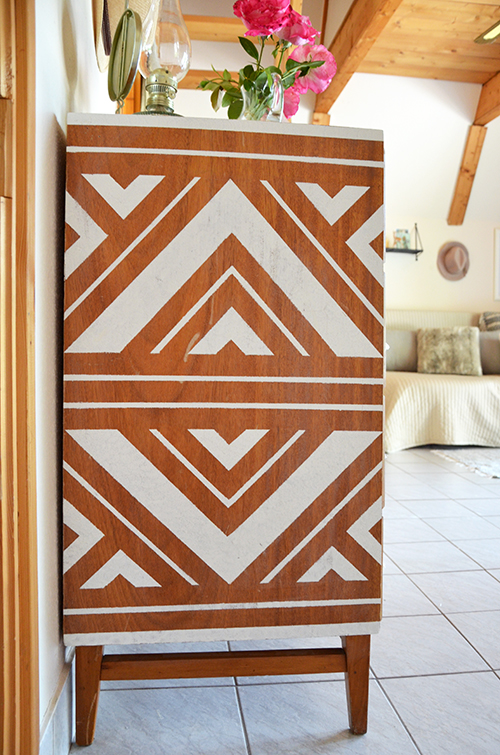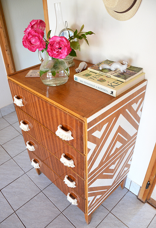 Azt tudtam, hogy a komódot átfesteni nem szeretném, teljes felületen csiszolni pláne, ezért a legegyszerűbb megoldást választottam.