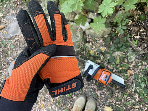 Majd felkaptam a védőfelszerelésemet (kesztyű, szemüveg, bakancs, hosszú nadrág) és felül levágtam a kisebb kiálló részeket.