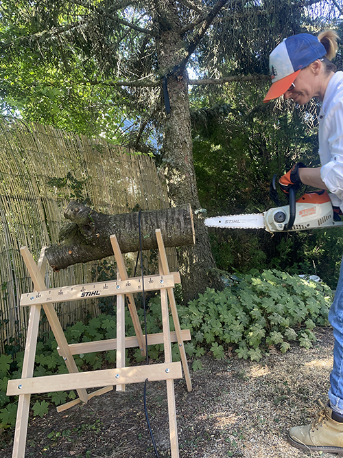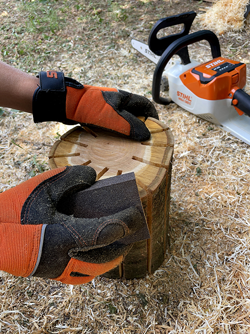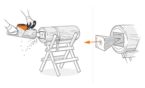 A lámpás ötletét egyébként a STIHL oldalán találtam, ahol rajzok és leírás segítségével lehetett követni a lépéseket. Már első olvasásra nagyon kíváncsi lettem, hogy vajon miként lehet egy rönköt hosszában, szálirányban vágni, volt egy sanda gyanúm, hogy másmilyen lesz, mint a kereszirányú, a rostokra merőleges művelet, ami még kezdőknek sem okoz nehézséget.