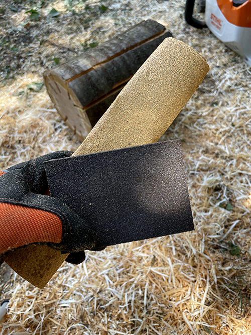A keletkező sok-sok faforgács és hosszanti rost egyébként kicsit olajos, hiszen a láncolaj miatt ez óhatatlanul a keletkező hulladék része. Ezt célszerű összegyűjteni, kiszárítva elrakni, és későbbiekben tábortűz begyújtáshoz lehet belőle venni egy-egy kis adagot.