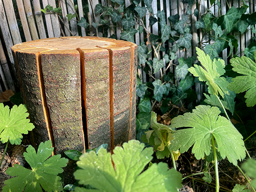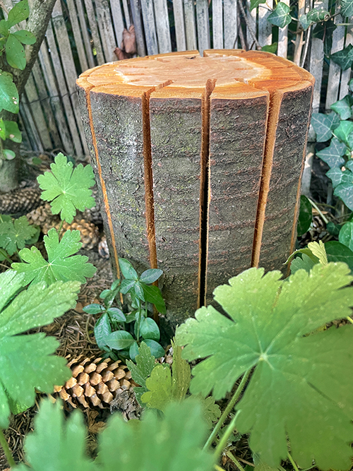 Minden elhulló, természetes faanyagra úgy tekintek a kertben, amiből még lehet valami klassz dolgot alkotni. Ilyen a márciusban kivágott meggyfa is, ami megújult formában kap lehetőséget, hogy továbbra is a kert része maradjon és díszítse azt. Ezúttal rönk lámpást készítettem belőle.