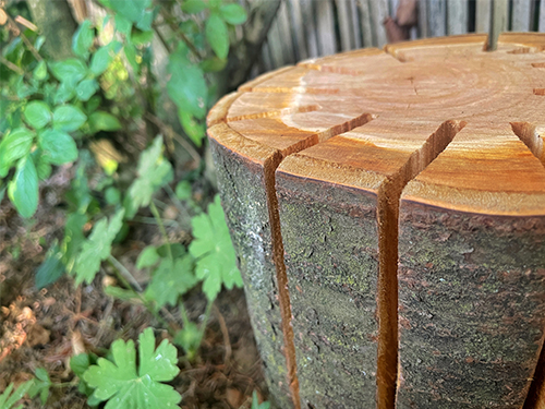Mielőtt belevágnék ennek a munkának a részletes ismertetésébe, egy pillanatra tekintsünk vissza arra a projektre, ami szintén ebből a meggyfából készült, egészen pontosan annak ágaiból. Feldarabolva, lenolajjal kezelve most már a díszkert éke egy kanyargó ösvény formájában, amivel azóta sem tudok betelni.