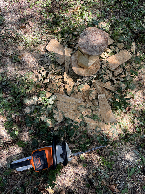 Egyébként azt hittem, hogy nehéz lesz kialakítani ezt a formát, de magam is meglepődtem, hogy annyira nem is volt vészes, sőt! Biztos benne van már az elmúlt 4 év láncfűrészes „rutinja”, de, ha egyszer nektek is láncfűrész kerül a kezetekbe és már magabiztosan daraboltok vele rönköket, akkor ezt a projektet bátran ajánlom megvalósítani.