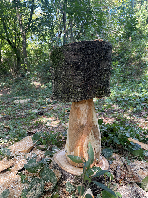 Most pedig azt vettem a fejembe, hogy a törzs legalsó megmaradt részéből egy gombát fogok kifaragni. és ezt a tervemet egy rövid bejelentkezős videóval meg is osztottam veletek: