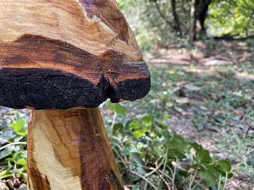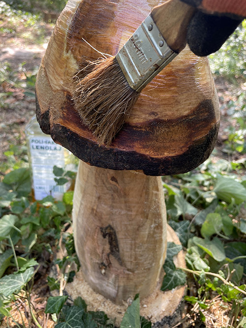 Utolsó lépésként a már kész gomba lenolajas beeresztést kapott, ami élettel telibbé teszi a rusztikus felületet és természetes módon védi a fát.