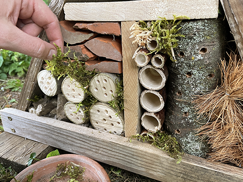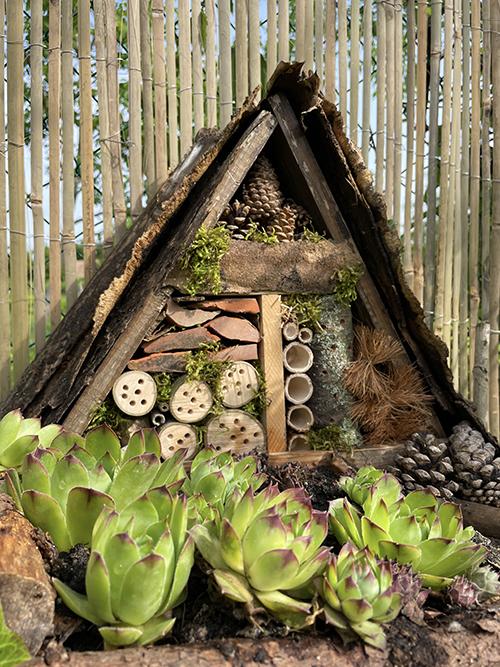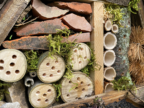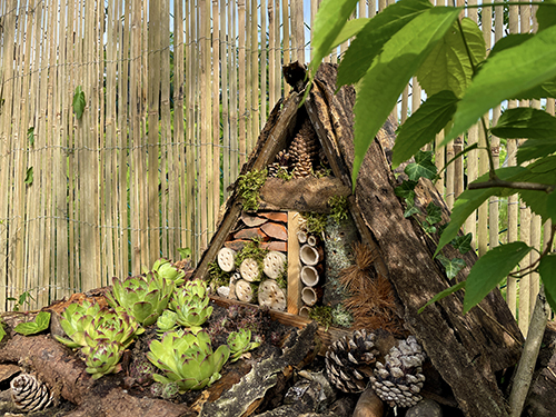 A rovarhotelem ezennel megnyitja kapuit a repülő és mászó rovarok számára, jöhetnek a katicák, magányos méhek, hangyák, zöldfátyolkák, és társaik.