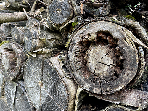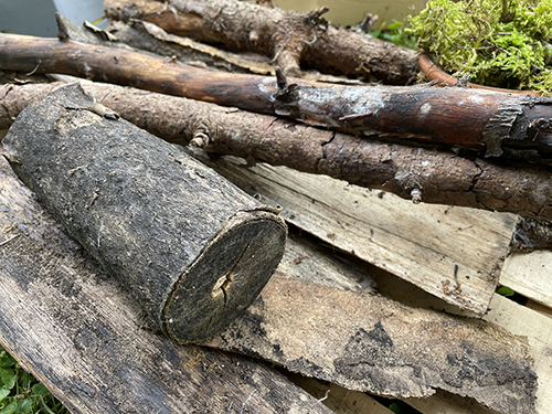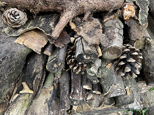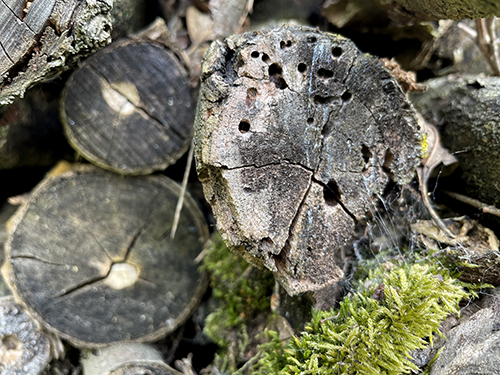 A különféle fajtájú és vastagságú ágakat, törzseket tartalmazó kupacnak most is voltak lakói, ez jól látható a vastagabb hasábok repedéseiben, és az abba vájt lyukakon: