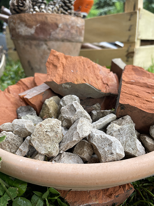 - Agyagtégla, kavicsok