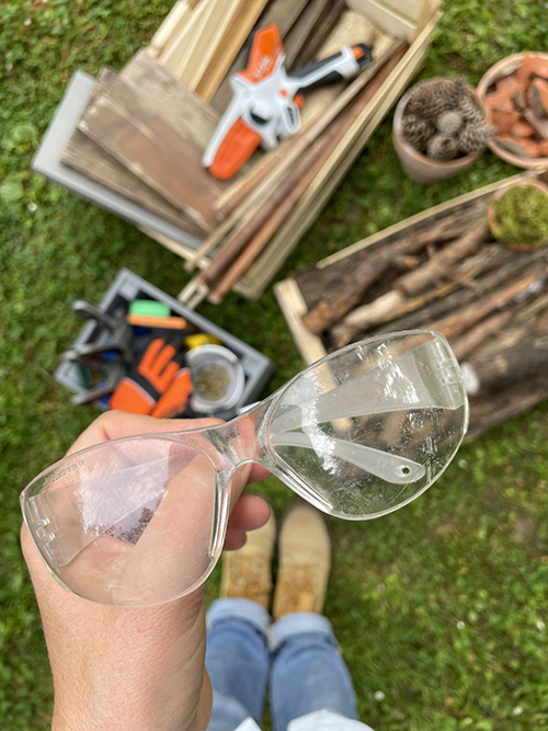 A biztonságot szem előtt tartva kesztyűt és védőszemüveget ajánlatos felvenni, mégiscsak láncfűrésszel és munka közben képződő faforgáccsal van dolgunk. A gép egyébként nem hangos, szóval fülvédőre nem lesz szükség és a szomszédot sem fogjuk az őrületbe kergetni, amikor dolgozunk.