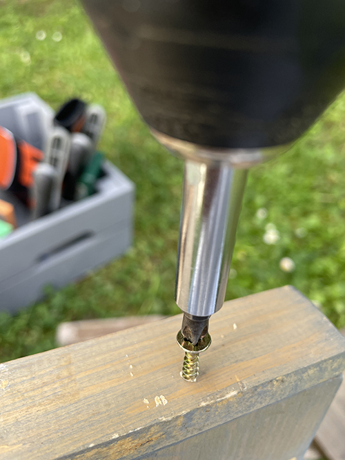 Ezek oldalt megtámasztották a tetőelemeket, de hogy felül se csússzanak szét 1-1 csavart kicsit ferdén befúrtam az egyikbe.