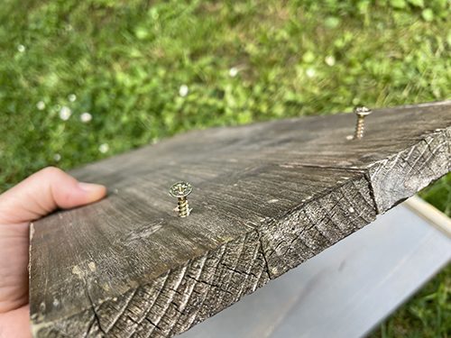 Ahhoz hogy az alapon stabilan álljon a két tető, csavarokkal rögzítettem először egy-egy kis lécet az alap oldalaira.