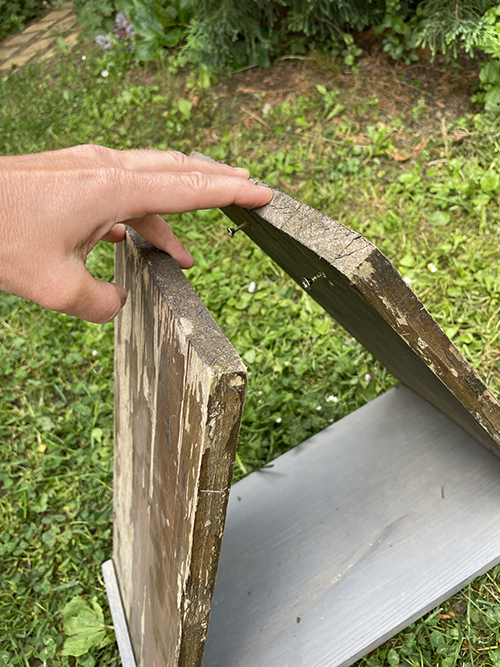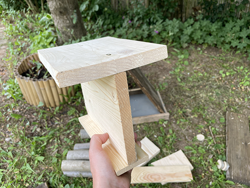 A tetők alaphoz történő rögzítését szintén egy-egy kis léccel oldottam meg, amit méretre vágás után az alapba és a tetőbe is belecsavaroztam a rovarhotel elején és hátulján is.