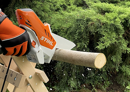 A láncfűrészes ágvágóval 8 cm átmérőig bátran lehet ágakat darabolni, nagyon szépen viszi.