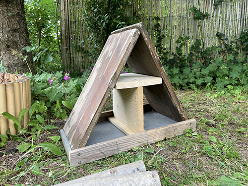 A rovarhotel helyszínének kipofozása után jöjjön a lényeg, maga a rovarhotel, de nevezhetném bogárbungalónak is.