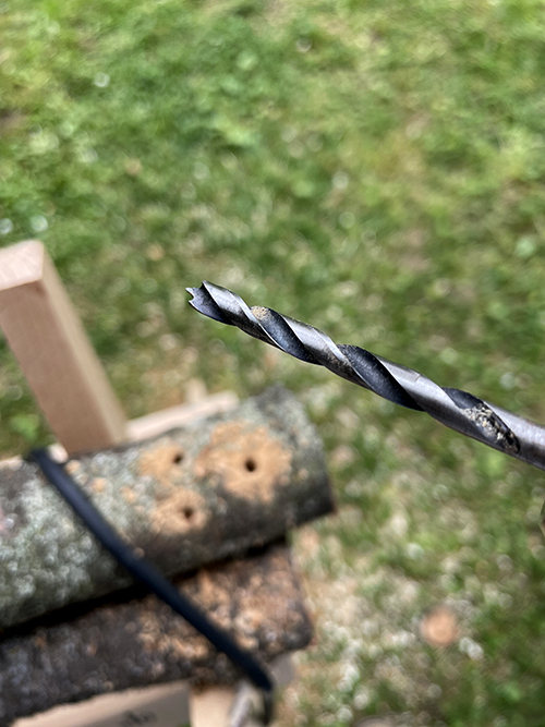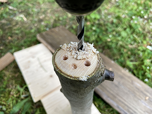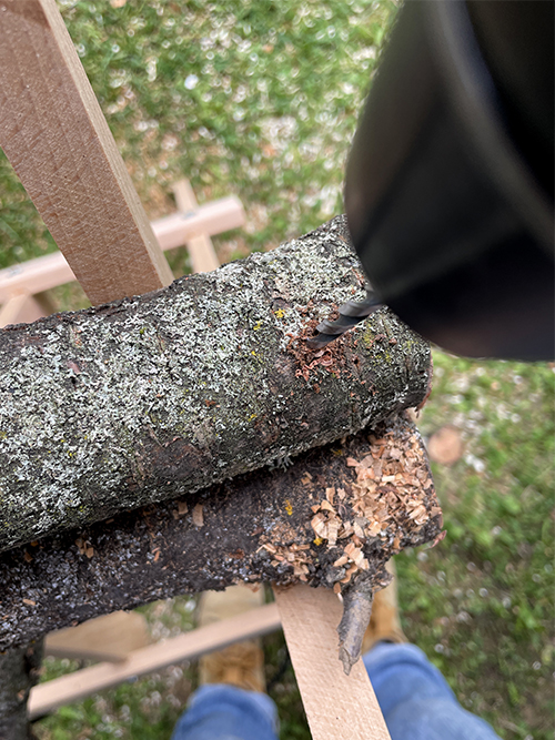 Ezután lyukakat fúrtam az ágdarabok metszetébe, illetve oldalára.