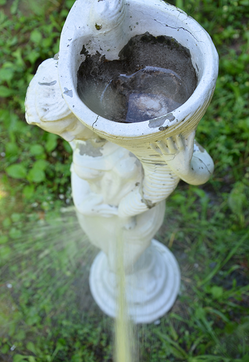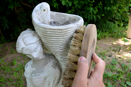 Első lépésként körömkefével és fogkefével alaposan átsikáltam a szobrot, majd vízsugárral lemostam.