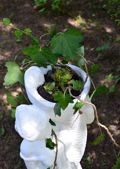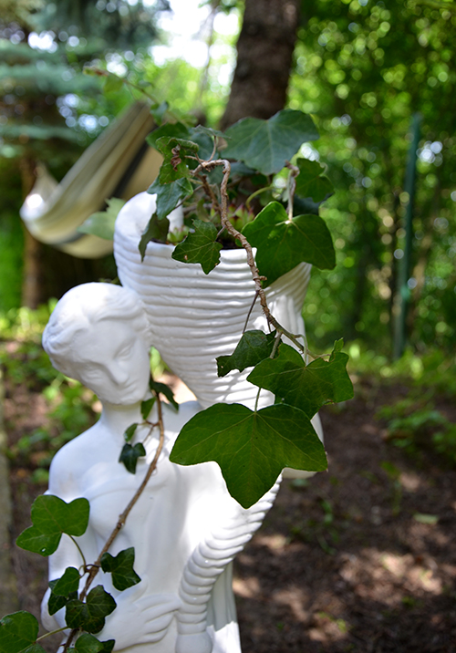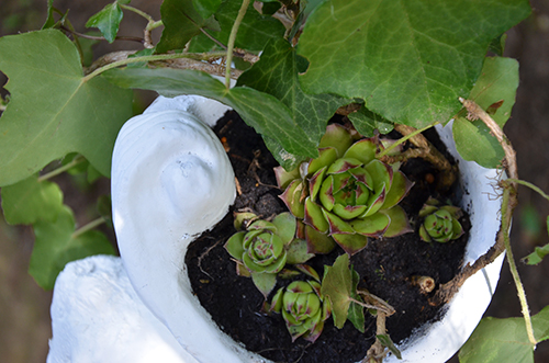 Így végül kövirózsákat és két tő borostyánt ültettem bele. Ez már két hete volt és úgy tűnik, a növényeknek tökéletesen megfelel Fortuna bőségszaruja, azóta is szép zölden virítanak.