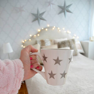 Ezért ide az önmagában mintás Impulse Circle számomra tökéletes választás. Ráadásul színben is passzol a szoba többi eleméhez, a párnákhoz, az ágyvéghez és az ágytakaróhoz is.