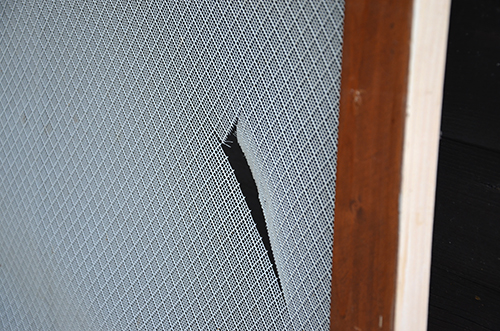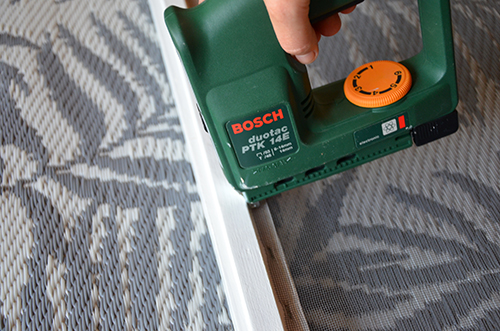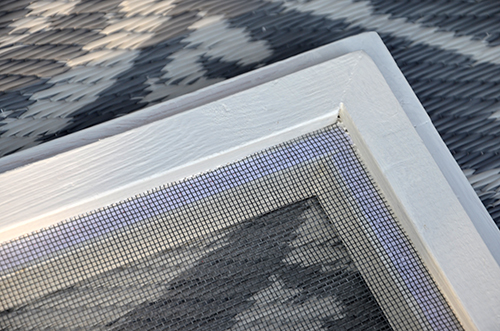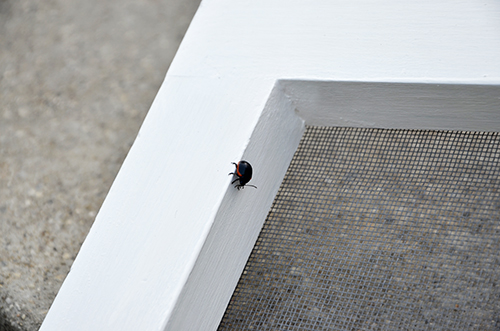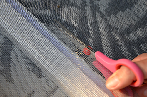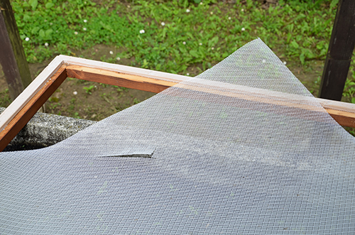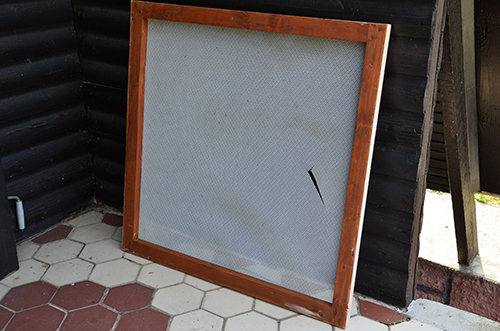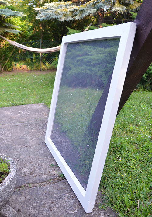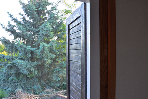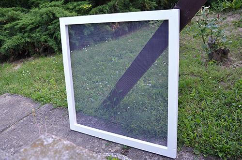 A napon és a folyamatosan mozgó levegőben nagyon gyorsan száradt a festék, a bogaraknak így ideje sem volt beleragadni. De azért a biztonság kedvéért az új szúnyoghálót csak az utolsó réteg felfestése után egy nappal rögzítettem.