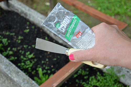 A korábban lazúrral kezelt keretet itt-ott kijavítottam fatapasszal.