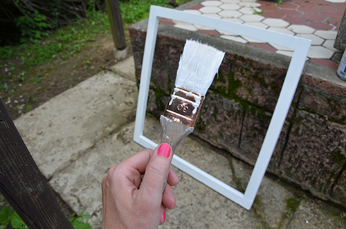Alapozás és fedőfestés után – ahogy a pinceablak esetén, ITT – az egész keret fehér színű lett.