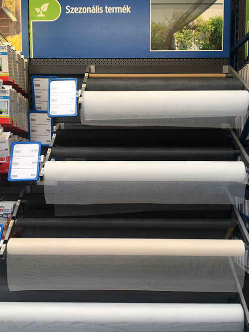 Illetve különböző szélességekben méterre is lehet vásárolni. Én az utóbbit választottam, és a szürke színre esett a választásom, ezen látszik a legkevésbé, hogy szúnyogháló van fent, de ezt majd később is látni fogjátok.
