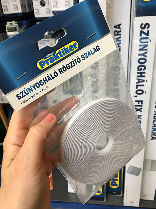 A rögzítéshez egy sajátmárkás rögzítőszalagot vettem, de a Tesa-nak is van.
