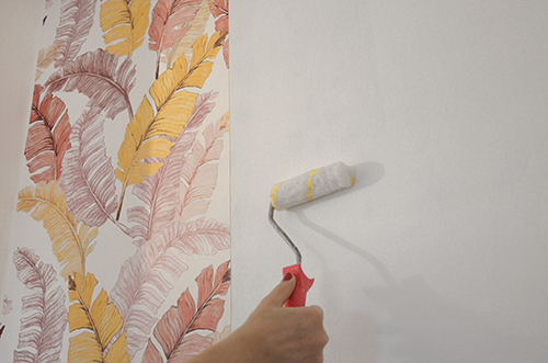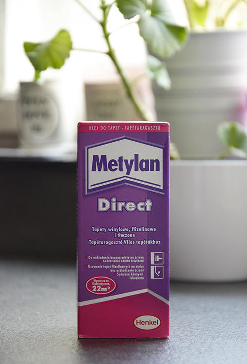 Tapétázás előtt az egész felületet újrafestettem Poli-Farbe Platinum fehér falfestékkel, amivel az egész előszoba le van kenve. Három rétegben gurultam át rajta, mert véletlenül sem szerettem volna, hogy a tapétán átüssenek a dalmata foltok. Friss festést elvileg 30 napot pihentetni kellene, de bevallom, én csak 24 órát vártam, bízva a festék jó tulajdonságában, de leginkább az eddigi tapasztalataimban.