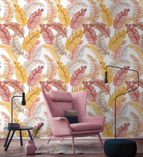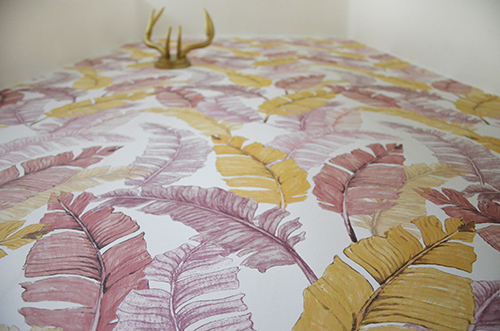 Ez a trópusi banánleveles minta vidám, játékos, egy adott falszakaszon szerintem nagyon klasszul mutat. Tudom, sokan úgy vélekednek, hogy túl karakteres mintát nem érdemes választani, mert hamar ráun az ember, és drága mulatság lenne pár év múlva megválni tőle. Én viszont amondó vagyok, hogy ha megfelelő falfelületet választunk, vagy akár csak pár tapétacsíkban gondolkodunk, akkor miért ne? Ráadásul a vlies tapéták (én ilyet választottam) a speciális tapétaragasztónak köszönhetően évek múlva is könnyen, a falfelület sérülése nélkül visszaszedhetők, nem fog kosszal, felfordulással járni a dolog. Végül pedig ne felejtsük, hogy a trendek folyamatosan változnak, az ember ízlése is formálódik, szerintem teljesen normális, ha egy idő után valamin változtatnánk az otthonunkban. Persze, hogy erre ki mennyit áldoz, vagy éppen hogyan használja erre kreativitását, az más kérdés.