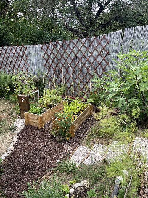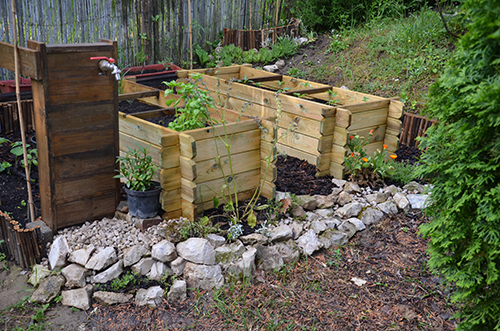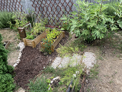 Amikor májusban magaságyásokat helyeztem el a korábbi kísérleti miniveteményesem helyére (ITT írtam róla), akkor tereprendezést is csináltam, sok idehordott földdel, feltöltéssel és kövekkel.