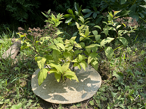 A növények alatti talajt sokféle természetes anyaggal lehet védeni, amik a kertben is megtalálhatók: elszáradt, feldarabolt növényrészek, lehulló levelek, aprított gallyak, tobozok, fenyőkéreg, stb. Egyedül a levágott fűnyesedék az, amivel nem szoktam talajt takarni, mert vastagon letéve berohadhat, nyálkássá válhat, ezért inkább hagyom nyírás közben vékonyan szétszóródni. Már amikor kell füvet nyírni, mert az eső hiánya miatt a „Vágatlan május” óta egyszer kellett csak elővenni a fűnyírót.