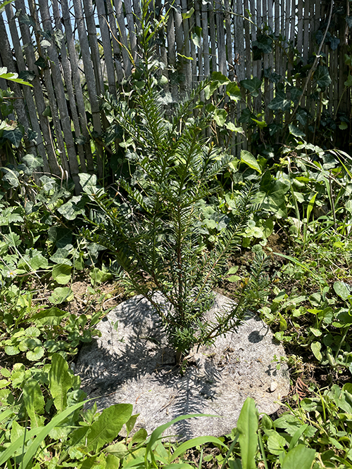 Ez a kis tiszafa még tavaly, a tél beállta előtt kapta a védelmező gallért, ami az idei szezonban védi alatta a talajt a kiszáradástól. Ősszel pedig tobozokat fogok alá szórni…