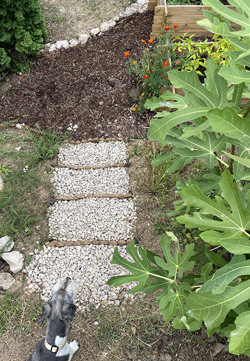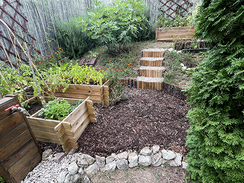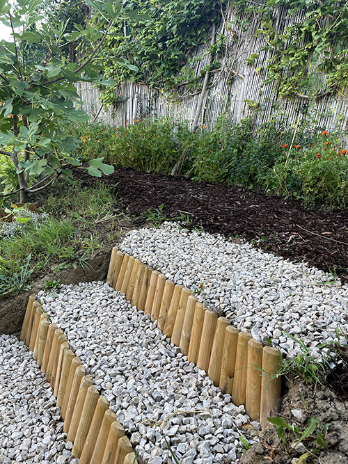 Az ágyásszegélyből és murvából épített kerti lépcsőm kiválóan teljesít, annyira örülök, hogy ezt is megépítettem.