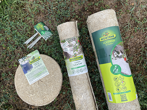 Ez a keverék anyag a Nortene kínálatában kétféle kiszerelésben is kapható. A körlap alakú CHANVRELIN 30 ill. 40 cm-es átmérőben, a hosszúkás formájú FLAXHEMP pedig 0.5 x 3 m illetve 0.75 x 5 m méretben érhető el.
