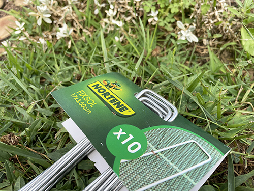 Mindenesetre ebből a típusból annyit rendeltem, hogy jövő szezonra maradjon a magaságyásokba, és a kerítés melletti veteménybe, mert ott is ki szeretném próbálni. Na de, ne szaladjunk ennyire előre, még mutatnék valami hasznosat, amit már korábban is használtam a bambusz és a fonott fűzfavessző ágyásszegélyek „összekötésére”, ITT.