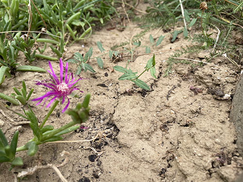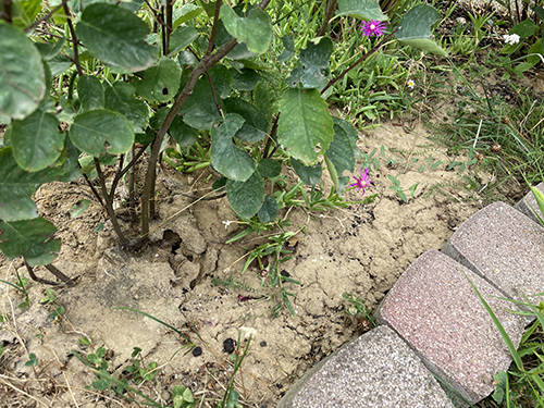 Nálam a napozóterasz körüli részen (ahol mindössze egy éves a növényes ágyás) még nem értek össze annyira a növények, hogy árnyékolják a talajt, és bár mindig rakok alájuk nyesedéket, elszáradt részeket, azért itt-ott az agyagos talaj kilátszik, és bizony gyorsan kiszárad.