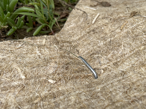 Amikor a természetes talajtakarót hosszan, vagy több részletben tesszük le, akkor érdemes néhány ponton a FIXSOL fémkapcsot használni. Ez meggátolja, hogy esetleg nagyobb szél az anyag alá kapjon.