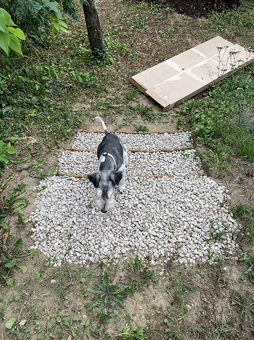 Persze, a gyomok majd itt-ott, főleg a széleken megpróbálnak majd feltörni, de a tapasztalatom az, hogy könnyű kezelni ezt a dolgot, egyet-egyet kihúzgálni a reggeli kávés séta során.