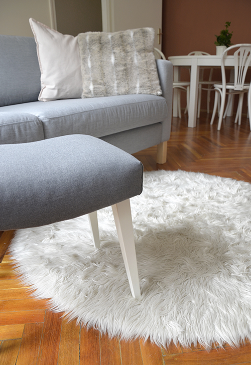 A kanapéhoz egészen véletlenül nagyon jól passzol a kárpitozott ülőkém, amiről ITT olvashattok a blogon. Ennek a borítása egy KLIPPAN kanapéhuzatból készült, amit még a FYND osztályon találtam, és árnyalatban csak egy picit sötétebb a mostani kanapénál: